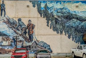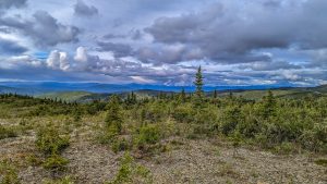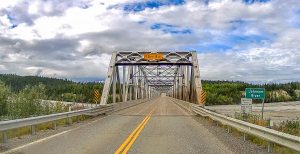 Nous démarrons l’Alcan toujours sous un ciel brumeux qui, malheureusement, ne nous permet pas d’apprécier le paysage à sa juste valeur. Les villes se font beaucoup plus rares mais elles sont toutes dotées d’un visitor center. Ce sont des offices de tourisme dans lesquels l’accueil est toujours souriant. Ils sont, le plus souvent, aménagés comme de véritables musées et proposent des services aux voyageurs que nous sommes (eau potable, wifi, toilettes, parfois même boîte à livres gratuits) : ils sont incontournables et c’est à chaque fois un plaisir de s’y arrêter.