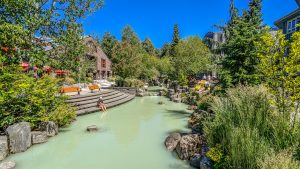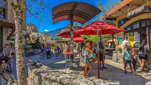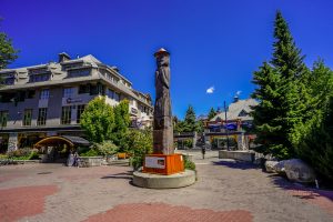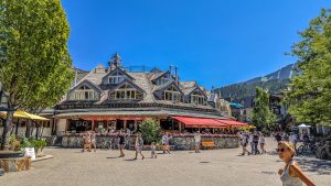 L’étape suivante sera le village de montagne de Whistler. Il a bien changé depuis la viste de Caroline en … 1995 ! L’accès très … « Disney » ne nous emballe pas vraiment avec ses parkings imposés, payants et débordant de camping-cars … Cependant nous allons (re)tomber sous le charme de ce village qui nous rappelle Chamonix ou Megève avec ses beaux bâtiments en bois, ses massifs impressionnants, ses fleurs … Il nous faudra bien une poutine locale (ou presque) pour se rappeler que nous sommes bien au Canada et non en Haute-Savoie ! 😉