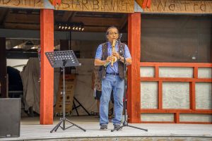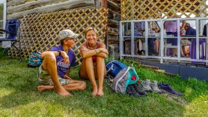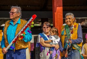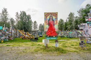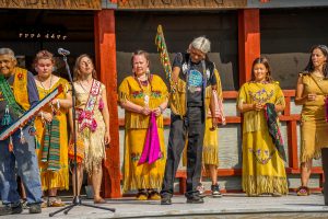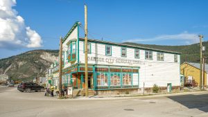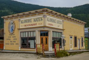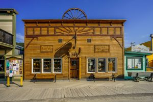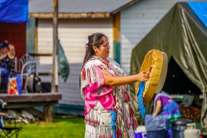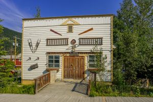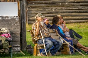Dawson city va être un vrai coup de coeur pour nous ! Cette ville aux accents de bout du monde est « restée dans son jus ». Alors, pas tout à fait car la ville a subi de nombreux incendies qui l’ont partiellement détruite et la géologie du terrain (pergélisol) fait que, sans travaux conséquents de rénovation, les bâtiments historiques sont voués à s’effondrer. Donc les constructions actuelles sont en fait plutôt récentes et/ou fortement consolidées et rénovées. Mais la ville a su conserver tout son charme d’antan avec ses bâtiments en bois, son saloon, son théâtre, ses boutiques rétro. Nous allons adorer son ambiance et décidons de nous y poser un peu d’autant que nous allons être conviés à assister à un festival organisée tous les 2 ans par la communauté native locale, les Tronde’k, pour rendre hommage à ses anciens et à ses traditions. Nous allons passer une journée splendide, qui va commencer par un randonnée de 2 heures pour accéder au village reculé de Moosehide, puis assister à diverses représentations musicales et déambuler parmi les divers ateliers d’artisanat local. Le retour vers Dawson city est organisé par la communauté Tronde’k, en bateau !