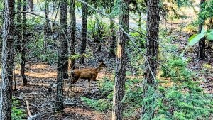 Nous reprenons la route sous une chaleur toujours aussi inhabituelle, dépassant même les 40°C. Nous enchainons les bivouacs en pleine nature et c’est génial, d’autant que, comme aux US, nous trouvons même des spots mis à disposition pour les RV ( véhicules récréatifs comme les camping-cars, les caravanes, les pick-up avec cellule …) avec parfois certaines commodités comme des poubelles, des toilettes, des tables de pique-nique, des barbecues (même si, du fait du fort risque d’incendie, il est strictement interdit d’allumer des feux en ce moment) … A de très rares exceptions près, ces spots sont très bien entretenus et très propres. Nous y sommes souvent tous seuls malgré la période estivale ce qui permet à Jules de passer de longs moments à vivre ses histoires dehors, sans spectateurs … Seuls … pas tout à fait … car nous nous trouvons de plus en plus confrontés à une cohabitation difficile … les moustiques ! Nous apprenons qu’ils sont particulièrement présents en cette saison, et le seront d’autant plus que nous montons vers le Nord ! Et ces petites bêtes ont le chic pour nous gâcher nos apéros en plein air …