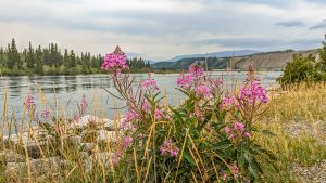 Après Whitehorse, nous quittons l’Alaska Highway pour emprunter la Klondike Highway. Cette route est bien moins empruntée par les camions et RV et nous allons avoir la chance de la parcourir sous un ciel superbe ce qui nous permet de prendre la pleine mesure des paysages absolument grandioses que nous traversons … C’est un ravissement à chaque virage et nous en prenons plein des yeux … De nombreux tronçons sont en travaux ce qui ralentit d’autant le voyage mais nous prenons le temps  :  Pepito tient bien la route et nous ménageons notre maison sur roues ! Nous traversons encore quelques zones calcinées mais la région semble, pour le moment plutôt épargnée par les feux cette année.