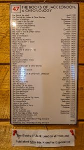L’autre point fort de la journée sera la visite du musée Jack London et de sa (partiellement reconstruite suite à un partage avec les US) cabane qu’il a occupé lors de son séjour dans la région. Jules est aux anges car il s’agit d’un de ses écrivains préférés. La dame en charge du musée est adorable, passionée également et contente de voir un enfant (oups pardon, un ado) s’intéresser autant aux photos et livres exposés.