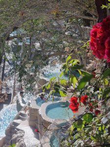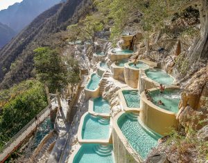 Après ces quelques jours citadins, nous reprenons le bus afin de récupérer Pepito, resté chez Omar à Teotihuacan et repartir ensemble vers une étape que Caroline attend depuis longtemps : le site de Tolantongo. C’est un endroit très « instagramable », composé de piscines naturelles d’eaux tièdes à chaudes, d’un rio bleu turquoise, de cascades et de grottes. Haut lieu de villégiature, nous avons une courte fenêtre pour le découvrir avant la semaine sainte qui voit affluer des milliers de visiteurs chaque jour. L’accès au site n’est pas simple, Pepito souffre un peu dans les descentes vertigineuses mais que le lieu est beau …. Les photos parlent d’elles-mêmes et encore … c’est encore plus beau en vrai !!