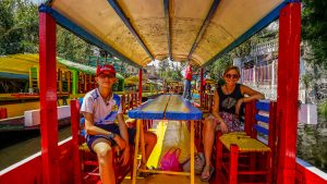 Mexico est une mégapole étendue sur près de 1500 km² (15 fois Paris tout de même). Il nous faudra presque 2 heures de trajet pour rejoindre les jardins flottants de Xochimilco. Nous y sommes pendant un week-end prolongé donc nous croisons beaucoup de touristes mexicains mais peu de « gringos ». L’ambiance est colorée, festive et nous apprécions ce petit coin, loin de l’idée « bétonnée » et grise que l’on peut se faire de la ville la plus peuplée d’Amérique du Nord.