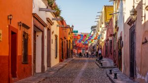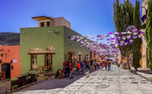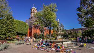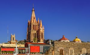 Nous reprenons ensuite la route pour remonter tranquilement vers la frontière. Après la découverte de la vieille ville de Queretaro à l’architecture coloniale et classée au patrimoine de l’humanité, nous nous posons à San Miguel de Allende. Nous allons adorer cette ville colorée, aux accents presque européens parfois avec sa place centrale ombragée, bordée de cafés et de restaurants. Sa paroisse de l’Archange Saint Michel, toute de rose vêtue est splendide. C’est un lieu qui donne envie de flâner dans ses boutiques artisanales et de se poser dans ses nombreux cafés et patios verdoyants. L’ambiance de cette ville nous rappelle un peu Antigua au Guatemala et elle va nous charmer de la même façon !