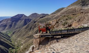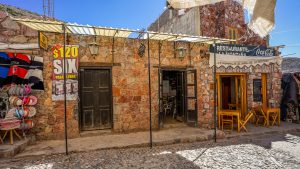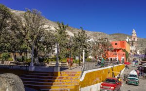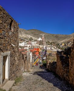 La route se poursuit avec une autre jolie escapade : la ville perdue de Real de Catorce. Pepito va, à nouveau, être mis à contribution car l’accès se fait via une piste caillouteuse, au milieu de champs de cactus. Nous allons devoir laisser Pepito à quelques kilomètres de la ville, étant hors gabarit pour passer par le tunnel qui permet d’y accéder. Un petit air de « Pékin express » avec l’usage de l’autostop pour finir le trajet et nous voici dans cette cité de montagne, décalée, voire un peu mystique. L’arrivée est un peu spéciale avec toutes ces échoppes de souvenirs qui bordent la rue principale mais dès que vous vous éloignez, l’ambiance prend et les pierres nous enchantent … Et que dire de la vue ….