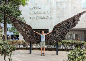 Bien sûr, nous allons aussi en profiter pour déambuler dans quelques musées. Nous allons avoir un gros coup de coeur pour le Château de Chapultepec qui abrite le Musée National d’Histoire. Le musée est passionnant, le château magnifiquement restauré et il bénéficie d’une vue superbe sur la ville. Pendant que Caroline travaille, Michel et Jules vont avoir aussi l’occasion de découvrir le Musée de la Mémoire et de la Tolérance, situé à quelques pas de notre location. Les expositions sont intenses émotionnellement mais très intéressantes. Il y a même une exposition temporaire sur Anne Frank : Jules avait eu du mal à aller au bout de son Journal mais cette visite lui a permis d’aborder son histoire différemment et de reprendre la lecture du Journal avec un oeil nouveau.