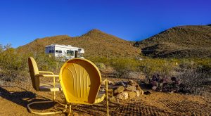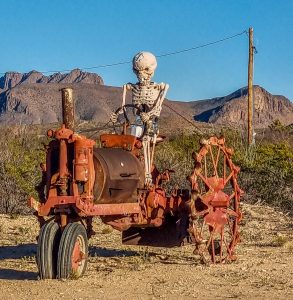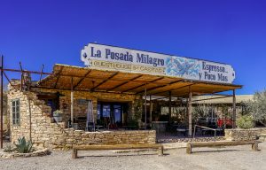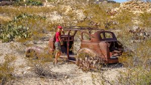 Notre première destination va être le Parc National de Big Bend au Texas et autant vous dire que cela va être un coup de coeur ! Tout d’abord nous allons nous poser pendant 3 nuits dans un endroit hors du temps, perdu au mileu du désert, à la décoration très locale … Les gérants Sally et Peter sont adorables. Peter va même partager son mot de passe top secret de son antenne Starlink (réseau internet par satellite très répandu chez les nomades) afin que Caroline puisse travailler sereinement. Ensuite, la zone est un terrain de jeu pour les nomades de tout horizon : très peu de constructions sur ces terres arides mais des camping-cars, des caravanes, des vans, des tiny-houses, des tentes, des tipis disséminés partout ! C’est le royaume de la vanlife ici et nous nous sentons totalement dans notre élément dans cette atmosphère détendue, paisible où chacun vit à son rythme dans un endroit aux accents de bout du monde …Endroit qui, pour la petite histoire, bénéficie d’un des plus beaux ciels étoilés du monde. Bon, il est vrai que nos Bauges nous gâtent aussi de ce côté-là et nous avons aussi de très beaux ciels au Costa Rica … Néanmoins, ce spectacle de la voie lactée, sans aucune pollution lumineuse à des miles est absolument exceptionnel. Avant de découvrir le parc national, nous allons faire un détour par Terlingua, ville quasi fantôme qui, après avoir eu son heure de gloire au moment de l’exploitation du mercure notamment, renaît aujourd’hui sous l’impulsion du tourisme et l’attraction du Parc voisin, très peu connu il y a encore quelques années mais dont la fréquentation explose.