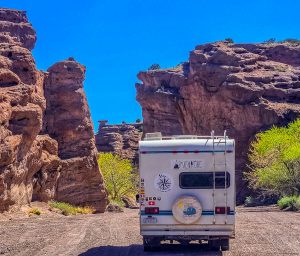 Mais il faut tout de même reprendre la route…. Et le moins que l’on puisse dire c’est que vanlife rime avec Texas. C’est d’une simplicité déconcertante de trouver des endroits pour se poser, parfois même équipés de petits barbecues, d’abri pour le soleil, de sanitaires. Les stationnements sont à taille …. américaine. Les routes sont larges, les bas-côtés entretenus par les habitants eux-mêmes. Nous croisons des autobus et des caravanes qui font passer Pepito pour un lilliputien !