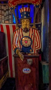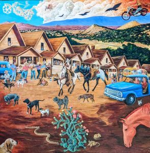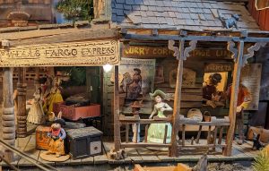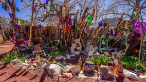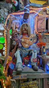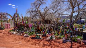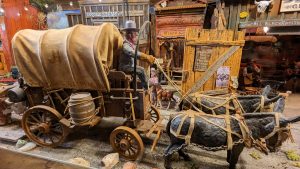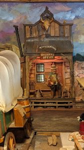 Nouvel enchantement du Nouveau Mexique : la Turquoise trail, à savoir la route panoramique qui relie Albuquerque à Santa Fé. Notre premier arrêt, des plus insolites, sera le musée Tinkertown. Créé de toutes pièces par un artiste voyageur passionné, il a passé une partie de sa vie à reproduire des scènes de vie à l’aide de la sculpture sur bois notamment. L’univers est décalé, on sent le collectionneur acharné pour qui tout petit morceau de n’importe quoi peut devenir quelque chose. Le créateur du musée est décédé il y a quelques années après avoir été diagnostiqué porteur d’Alzheimer … Un comble pour un cerveau si créatif et inventif … C’est sa femme qui a repris l’endroit et elle y met beaucoup de coeur.