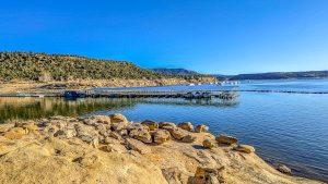 Notre dernière étape au Nouveau Mexique sera le Navajo lake, situé dans le Navajo state park. Même s’il est à grande majorité situé sur le Nouveau-Mexique, il déborde un peu sur le Colorado et il parait qu’il est surnommé le « Lake Powell » du Colorado. Alors effectivement, c’est une réserve d’eau créée par un barrage, comme pour le Lake Powell. Nous allons y dormir, seuls au monde, dans un silence parfait. Après, est-ce qu’il est effectivement comparable à son grand frère ? … Vous découvrirez cela dans le prochaine article !