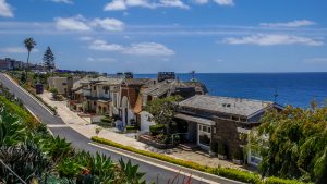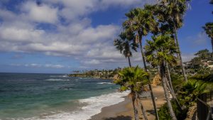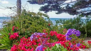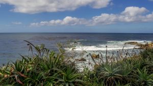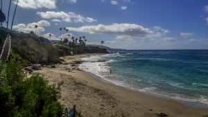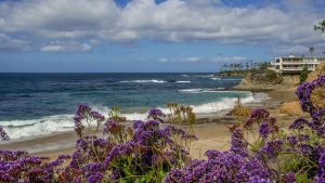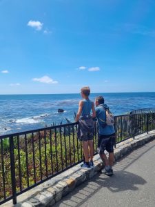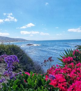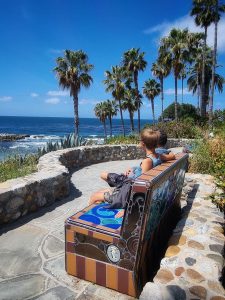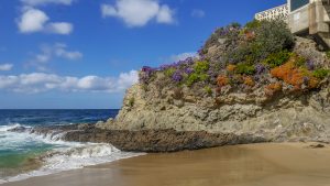 Le lendemain, nous poursuivons notre route vers le Nord en longeant l’océan et nous allons avoir un gros coup de coeur pour Laguna Beach. Nous trouvons des airs de Dinard à cette ville, avec sa promenade fleurie qui nous rappelle le Clair de Lune, ses rochers contre lesquels s’écrasent les vagues, ses jolies boutiques de décoration et ses galeries d’art et bien sûr ses belles demeures … Cela nous fait un peu bizarre de nous mouiller les pieds dans le même océan et au même moment que nos amis restés au Costa Rica … Cependant, nous notons une vraie différence dans la température ambiante et celle de l’eau !! On se plaît à imaginer acquérir une petite maison ici … jusqu’à tomber sur des annonces immobilières … Bon… même un petit bungalow n’est pas dans notre budget … Ce n’est pas grave, cela ne coûte rien de rêver !! La ville balnéaire de Corona del Mar sera aussi une belle découverte avec ses demeures de luxe : tout est propre, beau, carré. Chaque maison est différente mais l’ensemble reste très harmonieux et il n’y a pas de grosse construction pour dénaturer l’endroit. Ils ont su préserver leur littoral et c’est vraiment une agréable surprise.