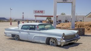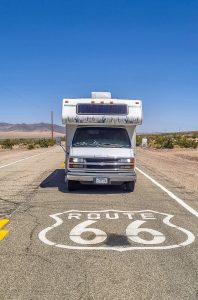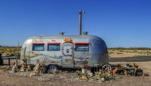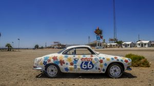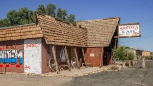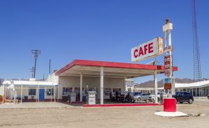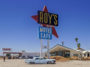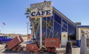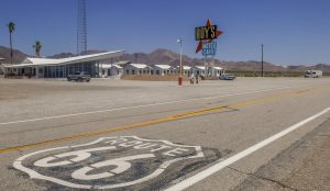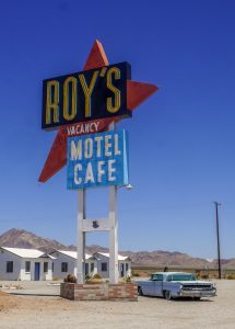 Nous empruntons par la suite des petits bouts de la route 66 et nous arrêtons sur certains endroits mythiques … Le Roy’s Motel & Cafe à Amboy qui a servi de cadre à de nombreux films, spots publicitaires et autres clips musicaux; Barstow, ville figée dans les années 50; l’incontournable Bagdad café et ses propriétaires tout aussi typiques … Nous sommes (enfin Michel et Caroline parce Jules semble même un peu sceptique devant l’enthousiasme de ses parents) en plein road-trip nostalgique et cette route est un vrai bonbon … (ou une madeleine …) Le bivouac pour la nuit sera encore une fois parfait, en plein désert de sable, toujours aussi tranquilles.