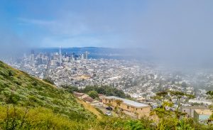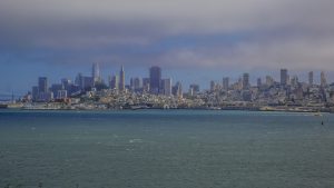 Et le lendemain ce sera la découverte des magnifiques quartiers de Fillmore et Haight-Ashbury avec leurs maisons coloniales colorées qui ont servi de décor à tellement de films. Nous tentons la vue panoramique depuis la colline de Twin Peaks mais malheureusement Karl le fog, ne nous permettra pas de l’apprécier à sa juste valeur. En effet, sur nos 3 jours sur place, le célèbre brouillard de San Francisco qui a même son petit nom (Karl) ne va pas nous quitter. C’est un phénomène vraiment particulier, qui coupe la ville en 2 parfois ; à droite un ciel bleu sans nuage et à gauche, un ciel tout gris qui ne permet même pas de voir à quelques kilomètres. Les habitants l’aiment souvent bien Karl car il permet à la ville de garder des températures confortables. On ne vous cachera pas que de notre côté, nous aurions apprécié quelques degrés de plus pendant notre séjour. Nous allons ressortir vestes, écharpes et même bonnet pour se protéger du vent qui peut être glacial. Le soir, nous allons passer sur le Bay Bridge, magnifique pont à 2 étages, pour diner avec des amis installés sur Oakland. Merci encore Barbara & Eric pour votre accueil et cette très jolie soirée …
