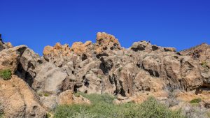 Pour en revenir au Désert de Mojave, nous allons en découvrir une infime partie le lendemain matin avec une rando qui nous fait descendre de façon quelque peu acrobatique dans un canyon bluffant, découvrir des rochers « emmental » (pleins de trous), puis marcher au milieu d’une végétation typique de ce désert qui est absolument sublime. Nous écoutons le silence après quelques jours de tumulte et nous adorons … Nous serions bien restés quelques jours de plus mais il nous faut avancer … Bientôt 1 mois que nous sommes aux Etats-Unis : nous avons vu déjà tellement de merveilles … mais il en reste encore tellement à découvrir !