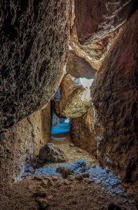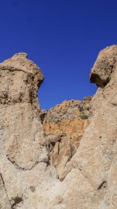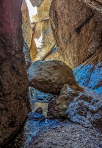 Ce parc a une particularité : il est coupé en 2 avec ses zones est et ouest qui ne communiquent que par des sentiers de randonnées. C’est clairement un endroit où l’on va pour marcher : pas de panarama en « drive-in », pas de route panoramique qui vous permet d’avoir un bel aperçu du parc sans bouger de votre véhicule. Cela en fait un endroit moins connu mais c’est justement ce que nous allons aimer ici : peu de monde, peu d’infrastructures, même le Visitor Center est réduit au strict minimum. Juste une nature toujours aussi magnifique et une balade originale dans un « slot canyon » créé de toutes pièces par des éboulements successifs. Une partie doit même se faire à la lumière d’une frontale : autant vous dire que Jules a adoré l’aventure !