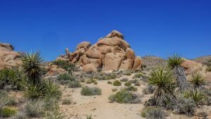 Nous avions un peu hésité à aller jusqu’au Parc National de Joshua Tree : cela nécessitait de faire un petit détour, nous ne sommes pas particulièrement en avance sur notre programme et des Joshua trees, nous en avions déjà vu quelques uns auparavant …. Sauf que, vous vous en doutez, nous avons adoré notre passage dans ce parc ! Encore une fois, les paysages sont démesurés, inédits et nous prenons plaisir à grimper sur des rochers aux formes incroyables, à admirer ces arbres si particuliers … Et nous finissons par une étendue de fleurs sauvages, qui donnent une couleur dorée au paysage … Le Joshua Tree est à la jonction de 2 écosystèmes, le désert de Mojave et le Colorado et cela donne des paysages riches, variés et toujours aussi impressionnants. Si vous passez par là, n’hésitez pas : allez-y ! Et pour la petite histoire, le petit Visitor Center de Yucca Valley est très bien fait et vous accueille avec pleins de bons conseils !