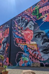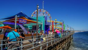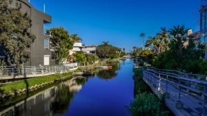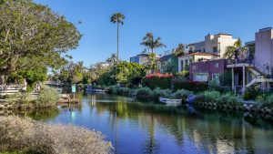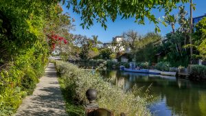 L’arrivée à Los Angeles se fera par les quartiers populaires dans lesquels nous passerons notre première nuit. Le contraste est saisissant, d’autant que cela fait longtemps que nous n’avons pas mis les pieds dans une grande ville. Nous avons repéré un endroit où poser Pepito pendant 3 jours : c’est un parking sécurisé, juste à côté d’une station de métro, excentré du centre-ville. Ce n’est pas glamour mais cela nous permet de sillonner sereinement la ville en transport en commun et les nuits sont finalement étonnamment calmes. Notre première étape sera Santa Monica et son célèbre pier avec ses manèges et… sa foule. Nous allons marcher jusqu’à Venice beach, avec ses sportifs bodybuildés qui font leurs exercices sur la plage et qui côtoient les boutiques de vente de cannabis … Ambiance décalée à part … Et nous allons avoir un nouveau coup de coeur totalement inattendu pour Venice canals … Petite Venise avec ses maisons colorées, fleuries qui nous plongent dans une ambiance si paisible avec cette lumière de fin de journée… Absolument magique !
